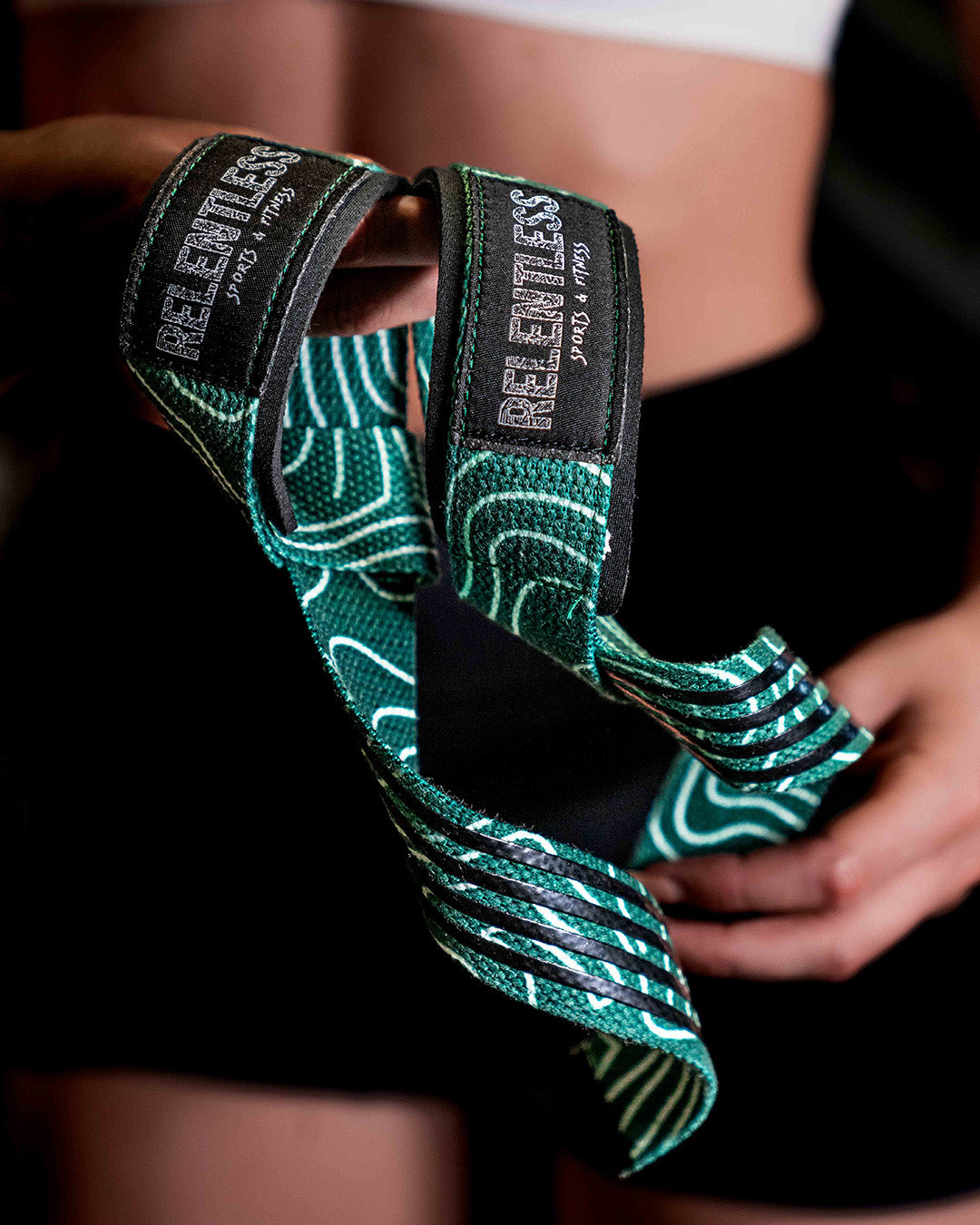 RELENTLESS FITNESS GEAR 4 piece set includes Lifting Straps, Cable Straps, Wrist Wraps and a Barbell Pad.